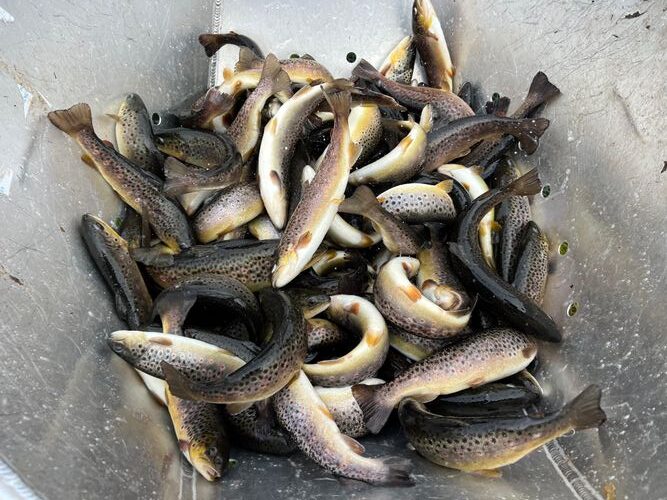 Pstruh potoční tržní 350 kg – MO Běstvina 200 kg, MO Hlinsko 150 kg