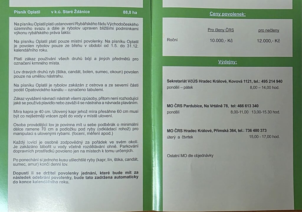 Na písníku Oplatil platí pouze místní povolenky vydané Východočeským územním svazem.